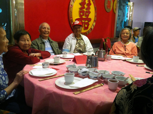 一點準時開餐。那天上了10個菜,每一道菜都做得可口。就在用餐快結束的時候,有一個服務員站在我們的桌子那里説:今天的餐是援心會的愛心人士請的,看到一位中年女士站立與大家點頭微笑示意。