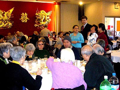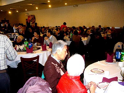 「本報克城通訊」二月八日中午,援心會在克里夫蘭阿唐餐廳第三度舉辦敬老聚餐,席開十桌,雖然天氣嚴寒,但援心會Helping Heart