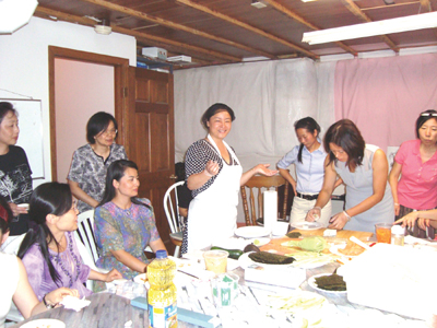 【本報訊】俄亥俄州婦女聯誼會于七月十二日邀請了克里夫蘭系列壽司店老闆袁琴女士前往哥倫布給婦女聯誼會的諸位女士們上了一堂“如何做壽司”課,袁琴女士講課生動風趣,女士們個個饒有興趣地學做壽司。大家在享受了自己親手做的壽司和每一位女士帶來的佳肴之後,又借着餘興唱起了卡拉OK,讓衆女士朋友們度過了一個愉快之夜。