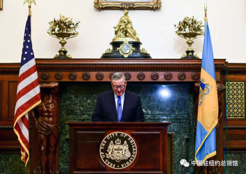 近日,《姐妹城的影像故事——天津費城姐妹城市攝影展》在費城市政廳舉行開幕儀式,中國駐紐約總領館副總領事張美芳、費城市長詹姆士·肯尼(James