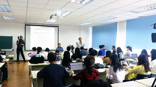 (小穎) 圖1:冰凌在上海交通大學人文學院演講《中美文化的異同比較》。