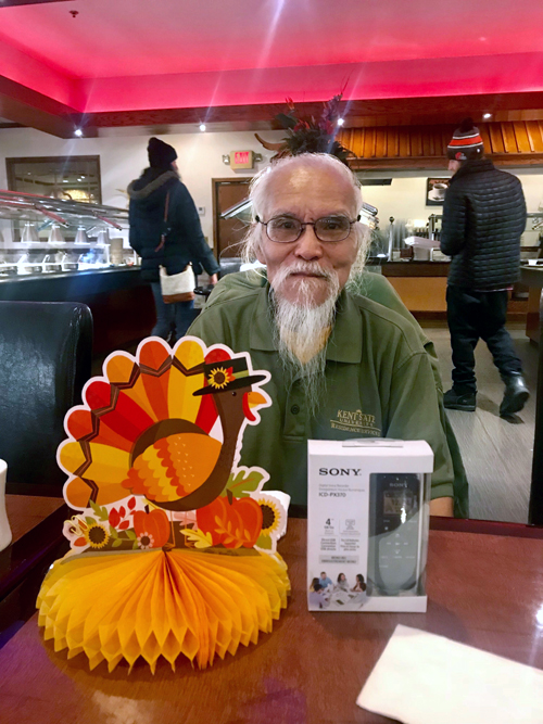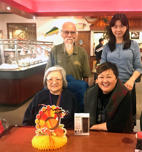 感恩節在常靑公寓吃完午餐。我帶着歐陽黎去Kent老人公寓接黎華趙先生一起與Kitty和她的姐姐,和以往一樣在Kumo一起過感恩節,感謝黎華趙先生帶我們參觀Kent大學,讓我們明白也學到許多新的知識。